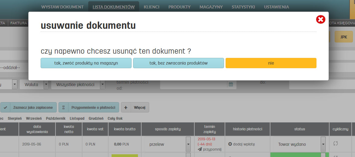 Usuwanie dokumentu w programie do fakturowania faktury.pl